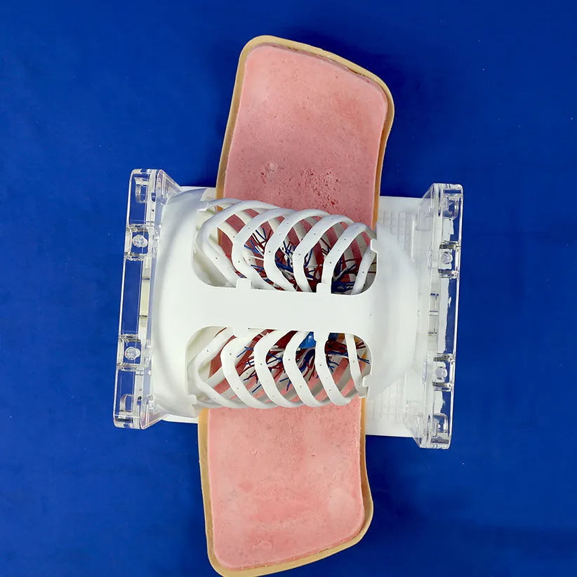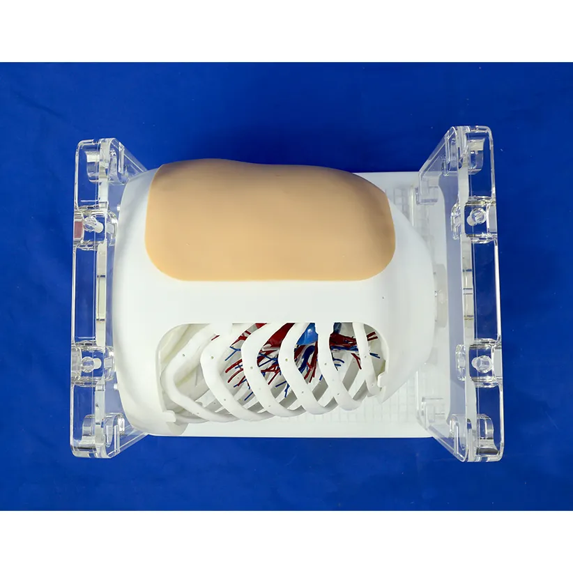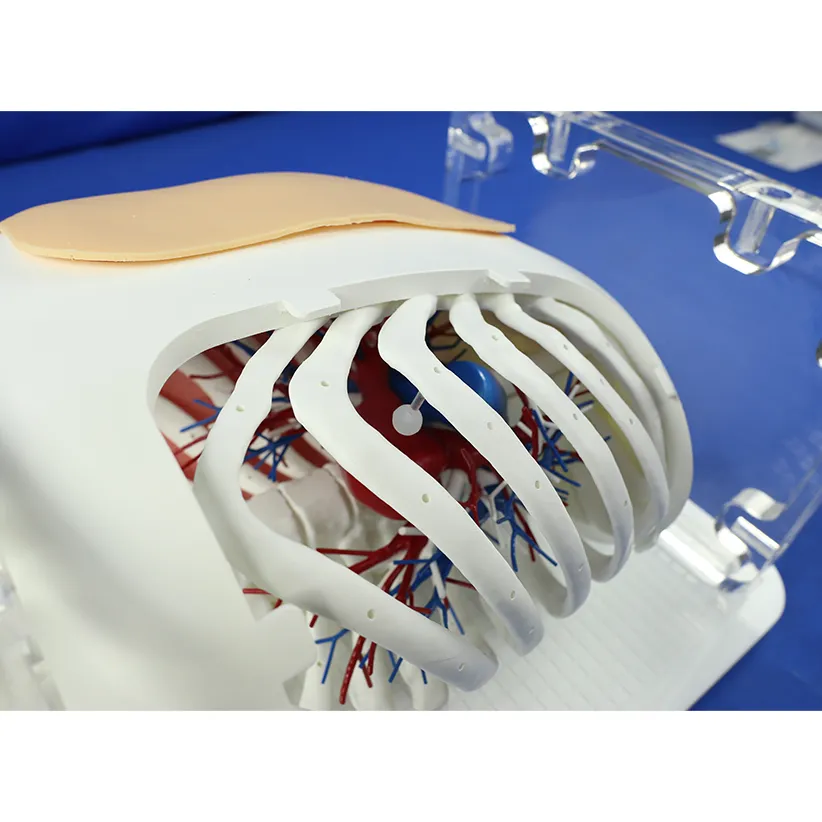 | Features | Optimized based on real human CT data, it accurately replicates structural details such as skin, costal ribs, bronchi, pulmonary arteriovenous structures, and pulmonary nodules at a 1:1 scale. With a soft touch and visually realistic appearance, the nodule position can be flexibly adjusted, making it suitable for training in the operation of pulmonary nodule localization needles. It precisely simulates the clinical puncture approach and posture adjustment process. |