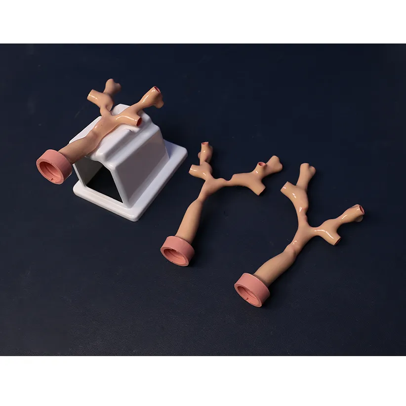 This module is a high fidelity training tool designed specifically for interventional treatment of bronchial stenosis. The product is based on real CT data and clinical consensus, using food grade soft silicone 1:1 to restore the structure and hardness of human bronchial tubes, providing three difficulty levels of stenosis from simple to difficult, highly simulating various stenosis forms caused by external compression.