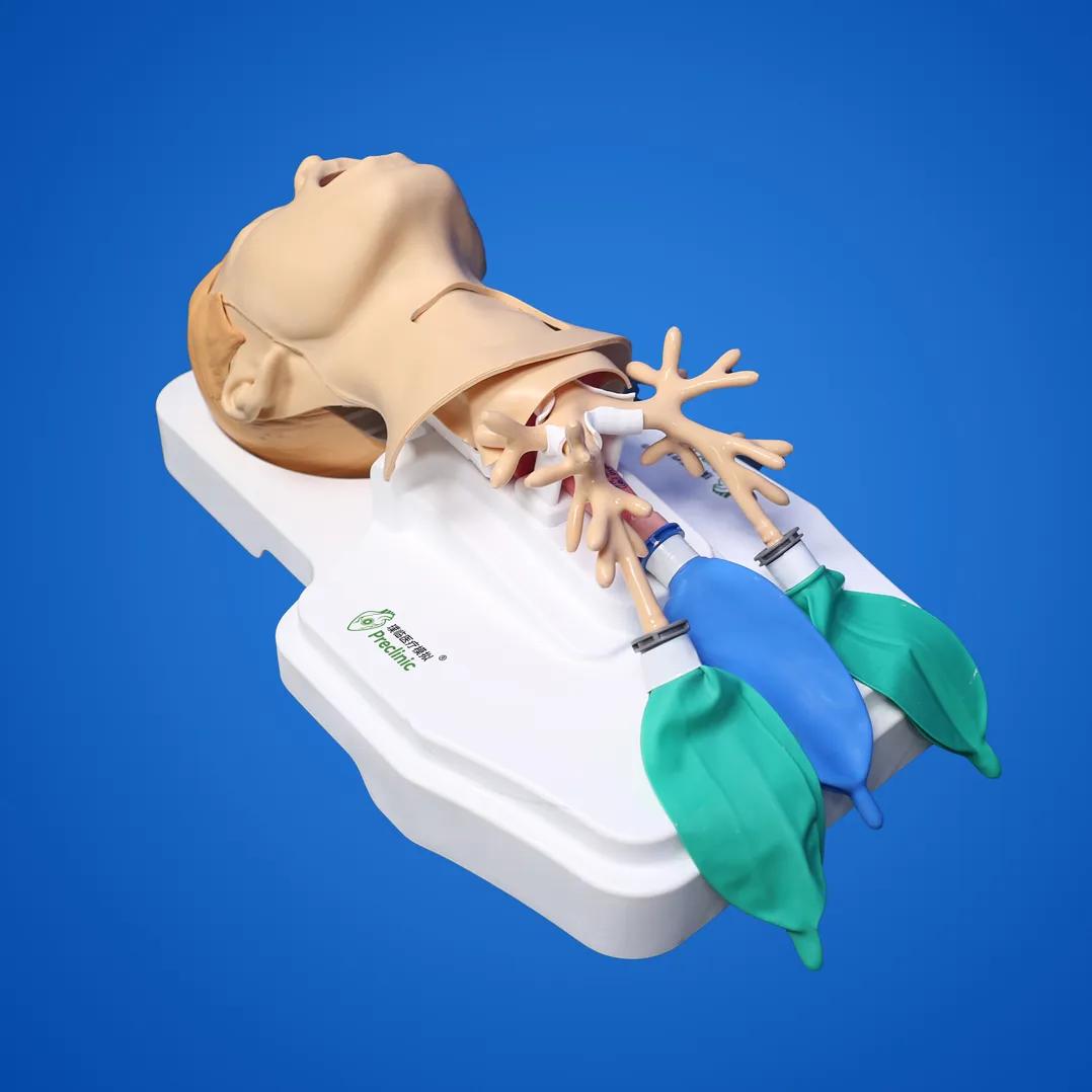 | Features | ·Touch the trachea with your hand to locate the incision site, and practice different types of incisions for traditional percutaneous tracheostomy: longitudinal, transverse, cross, U-shaped, and inverted U-shaped incisions; ·Simulate minimally invasive procedures for percutaneous dilational tracheostomy; train key nursing operations after tracheostomy, including suctioning, airway humidification, cleaning and replacement of tracheal tubes, etc.; simulate tongue enlargement, and through designs such as inflation, simulate pharyngeal stenosis caused by edema, obesity, etc. ·Simulating glottal closure and sudden closure of the glottis caused by vocal cord spasm, training coping strategies can simulate airway obstruction, preventing gas from entering the lungs during artificial ventilation. |